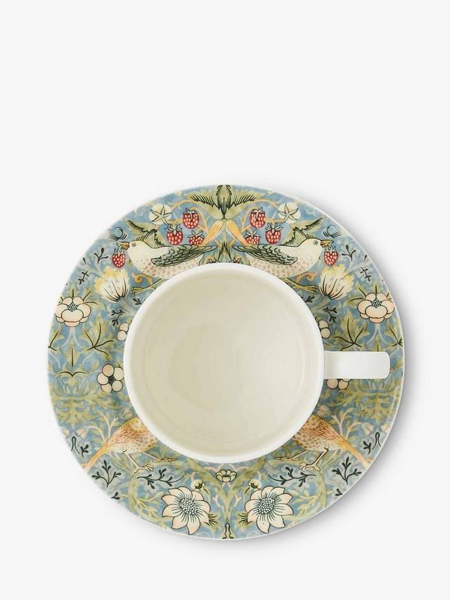 Фарфоровая чашка с блюдцем, вдохновлённая любимым принтом Morris & Co. Вор клубники. Узор взят из архива художника и дизайнера Уильяма Морриса из коллекции Искусства и ремёсла, а воплощён в жизнь компанией Spode.