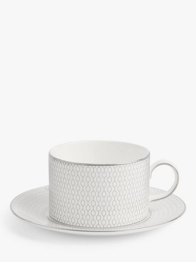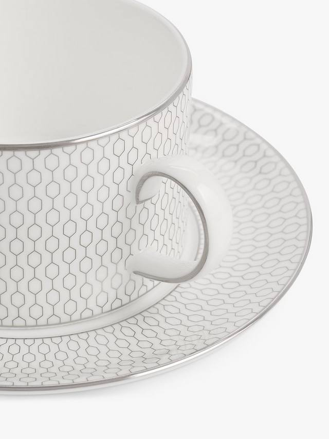 Столовая посуда Wedgwood Gio Platinum украшена металлическим геометрическим узором на белом тонком костяном фарфоре. Этот комплект чашек и блюдец из этой серии отличается современным дизайном и легко моется в посудомоечной машине. Сочетайте и сочетайте с другими коллекциями Wedgwood, чтобы освежить свою посуду.