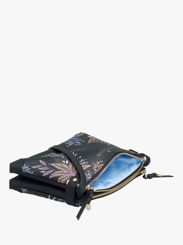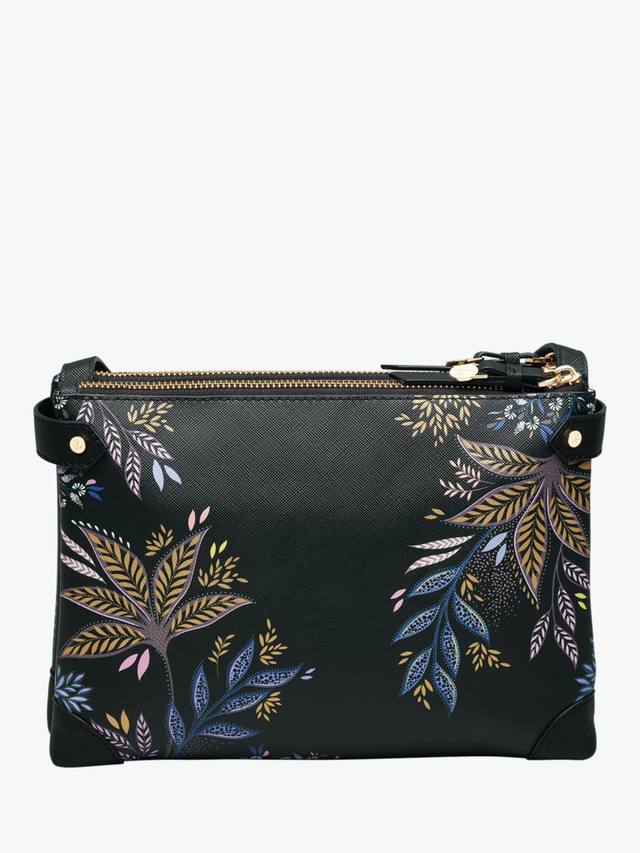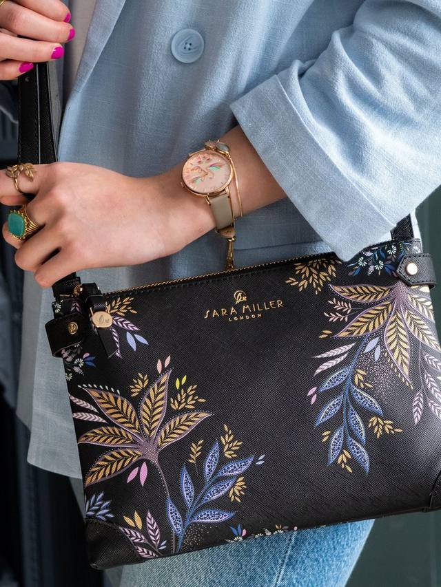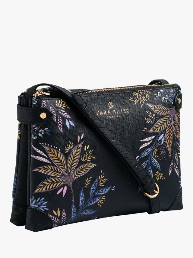 Сумка через плечо Sara Miller на молнии — идеальный аксессуар как для дневного, так и для вечернего ношения. Длинный плечевой ремень и несколько отделений делают её отличным спутником для походов по магазинам, а вечером её можно носить как сумку через плечо. Черная ботаническая расцветка обеспечивает удобство ношения благодаря дополнительной роскоши декоративного принта золотой фольги.