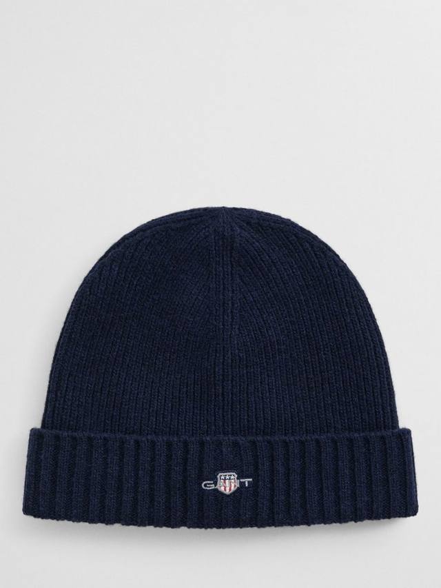 Эта шапка выполнена в классическом ребристой вязальном стиле и украшена вышитым изображением щита GANT на передней отвороте.