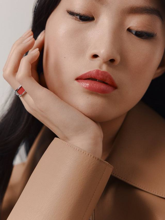 Для создания безупречно очерченных губ или создания эффекта легкого омбре используйте карандаш для губ Trait d'Hermès перед нанесением помады Silky Lipstick Shine.