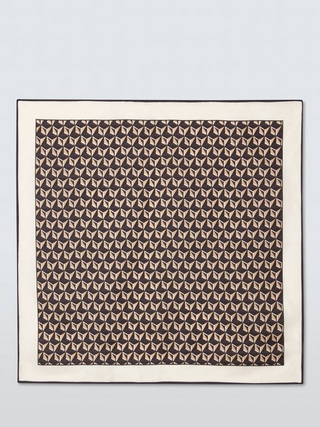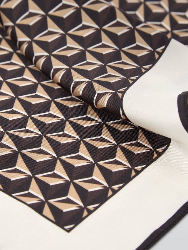 Легкий квадратный шёлковый шарф. Украшен геометрическим узором.