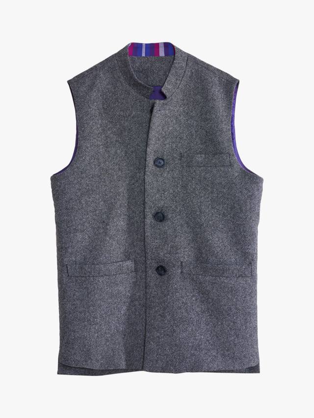 Этот жилет имеет 3 прорезных кармана спереди и украшен изящными деталями из аутентичных кенийских тканей кикой.