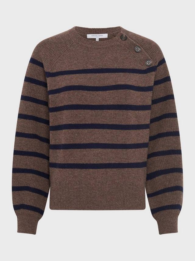 Этот свитер с круглым вырезом от Gerard Darel выполнен из теплой шерсти и отделан простыми полосками, что создает приятную альтернативу моделям с однотонной расцветкой.