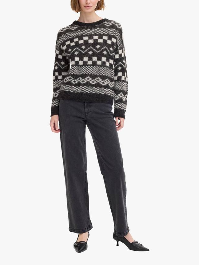 Этот джемпер средней плотности с узором фэр-айл от ICHI выполнен из теплой шерстяной смеси с круглым вырезом и длинными рукавами, что облегчает создание многослойного образа.