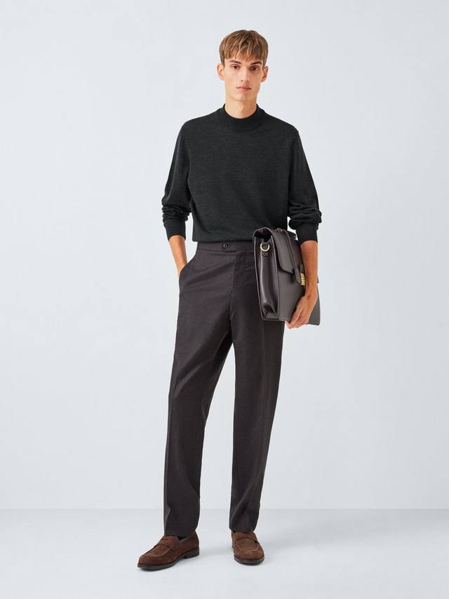 Этот джемпер связан из высококачественной шерсти, что делает его мягким и роскошным. Вырез под горло добавляет уверенный и современный вид традиционному силуэту. Ребристые отделки создают аккуратный вид, а тонкая вязка делает его идеальным для ношения в сочетании с другими вещами или отдельно.