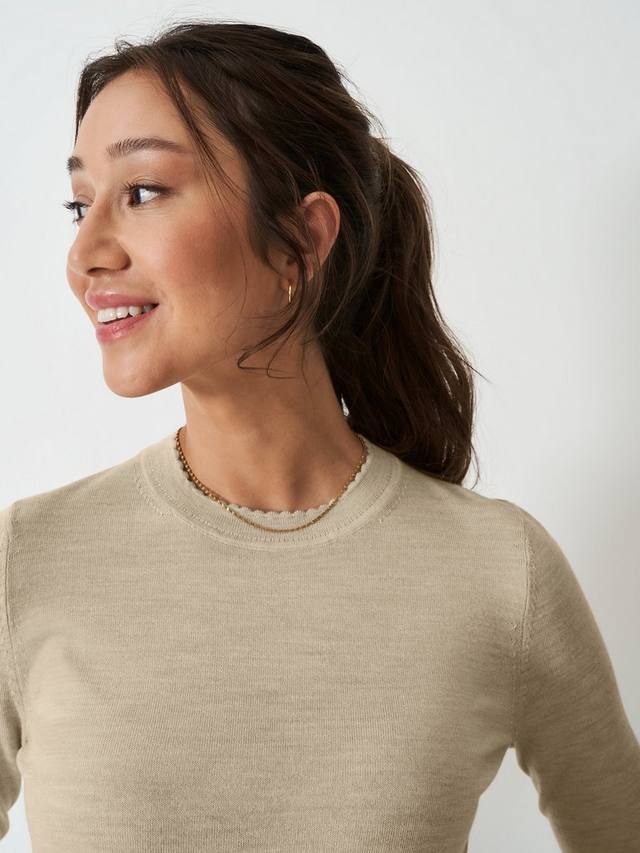 Мягкий и уютный джемпер из мериносовой шерсти, созданный с вниманием к деталям. С фестончатым краем на горловине и фирменной вышивкой в виде перекрещенных вёсел над подолом. Носите с чем угодно в этом сезоне, от джинсов и кроссовок до юбок и ботинок.