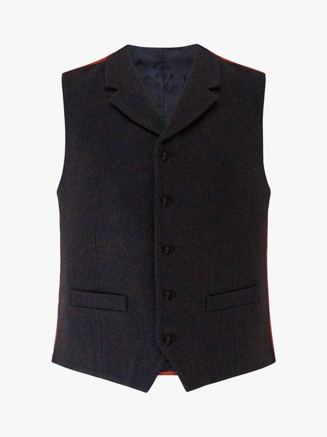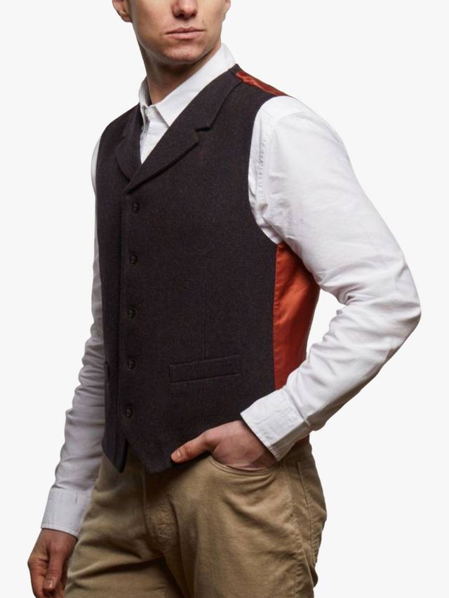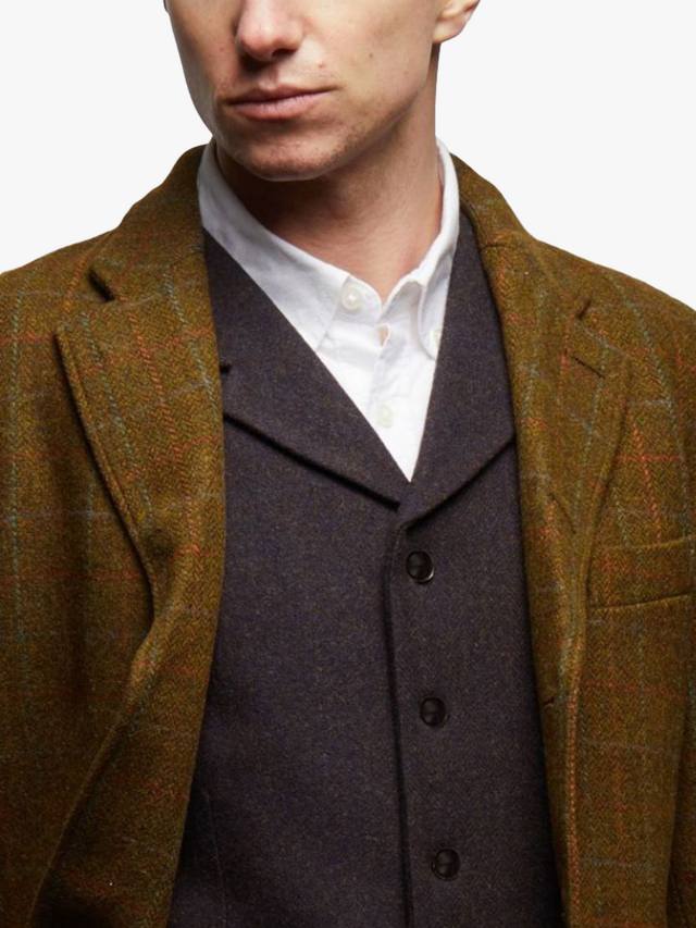 Жилет Sherwood воплощает вечную британскую элегантность и идеально сочетается с твидовым блейзером Allenby того же бренда. Этот однобортный силуэт также выполнен из чистой шерсти и застегивается на пять пуговиц.