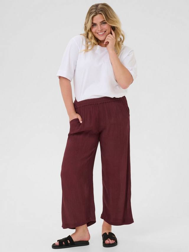 Сдержанный объём и строгий крой — широкие брюки-кюлоты от KAFFE. Они имеют среднюю посадку и стандартную длину низа.