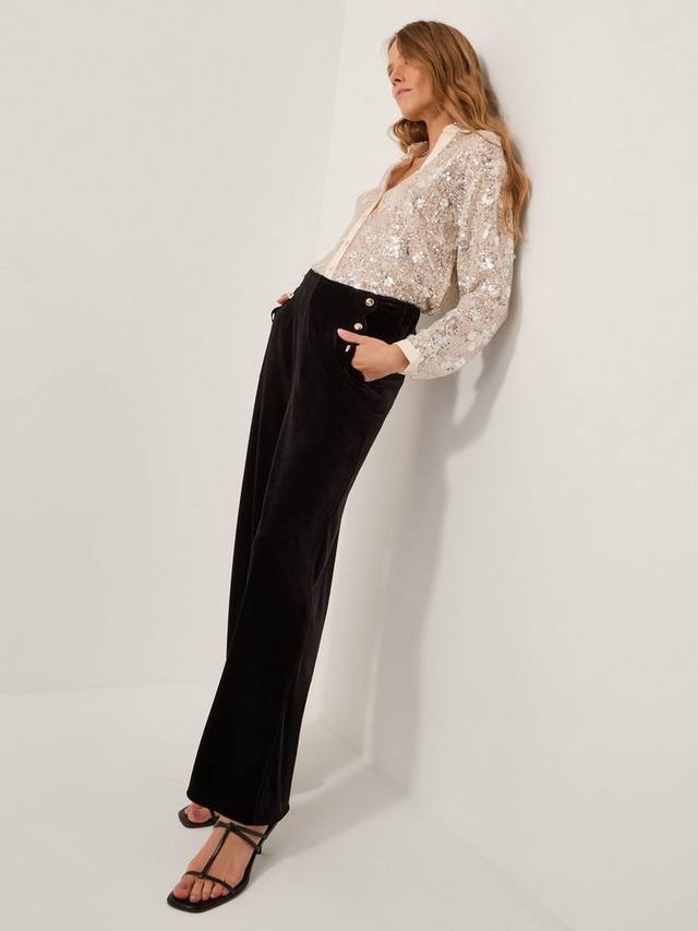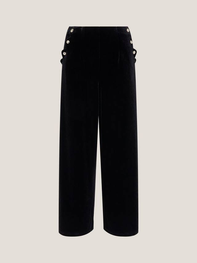 Брюки, которые можно носить на ужин, в бар или на любое мероприятие в сезон вечеринок. Высокая посадка на талии и свободный крой, они выполнены из роскошного мягкого бархата, создающего изысканный образ. Нам больше всего нравятся фигурные боковые карманы и отделка на пуговицах.