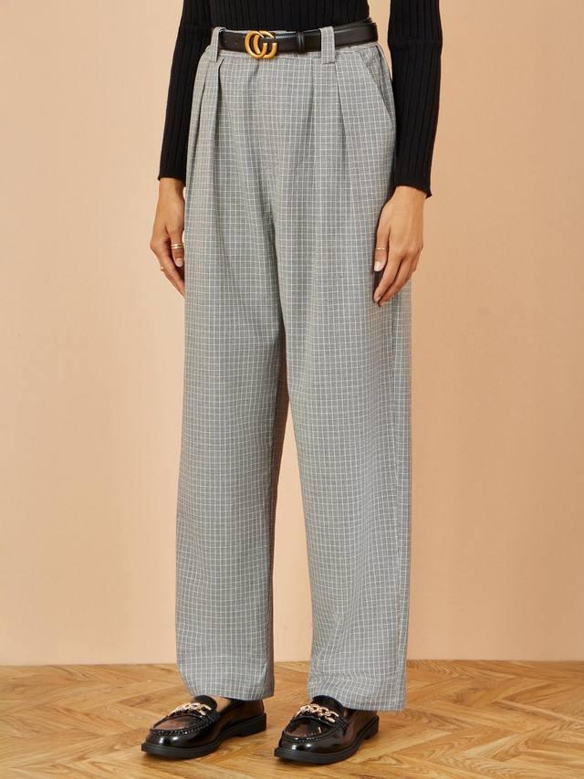 Мелкая клетка на этих брюках уникальна, но при этом практична и идеально сочетается с трикотажем и рубашками. Пояс имеет аккуратную складку спереди и слегка эластичную спинку для комфорта и стиля.