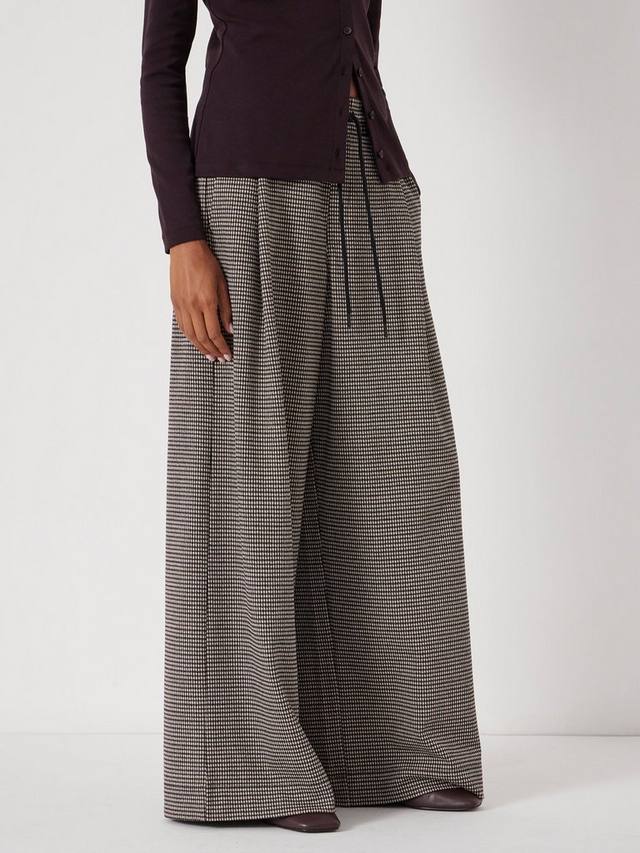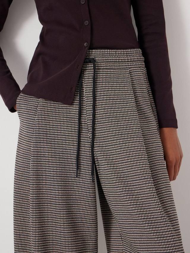 Брюки, которые выглядят довольно нарядно (мы старались), но ощущаются как пижама? Да, пожалуйста. Эти брюки с широкими штанинами в мелкую клетку выполнены из супермягкого трикотажного джерси, поэтому мы чувствуем себя собранными и удобными в течение всего дня. Заправьте что-нибудь облегающее за пояс, чтобы проявить креативность с объёмом и формами.