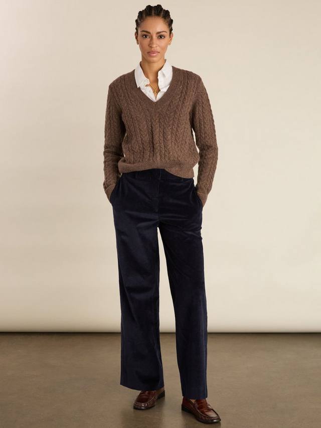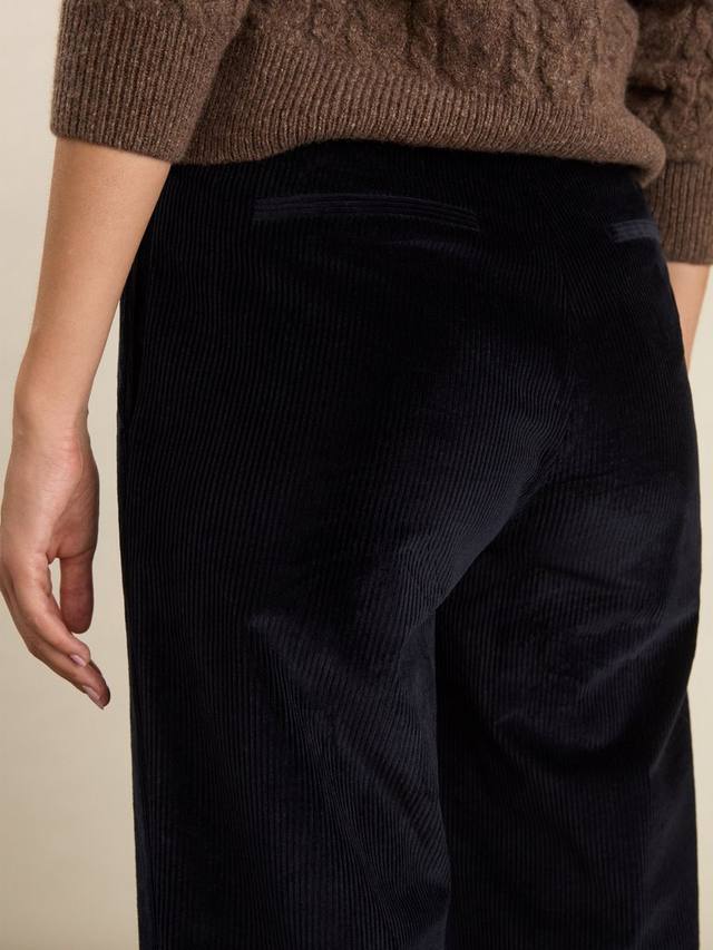 Если вам нужны строгие, универсальные брюки, теплые и с текстурой, обратите внимание на вельветовые брюки Melis темно-синего цвета. Эта модель с широкими штанинами выполнена из органического хлопка с добавлением эластичной ткани для комфорта и имеет простой, плоский перед. Шлевки для ремня позволяют легко создавать стильные образы, и нам нравится, как они сочетаются с вельветовым блейзером Wanda, создавая стильный образ с классическим костюмом.
