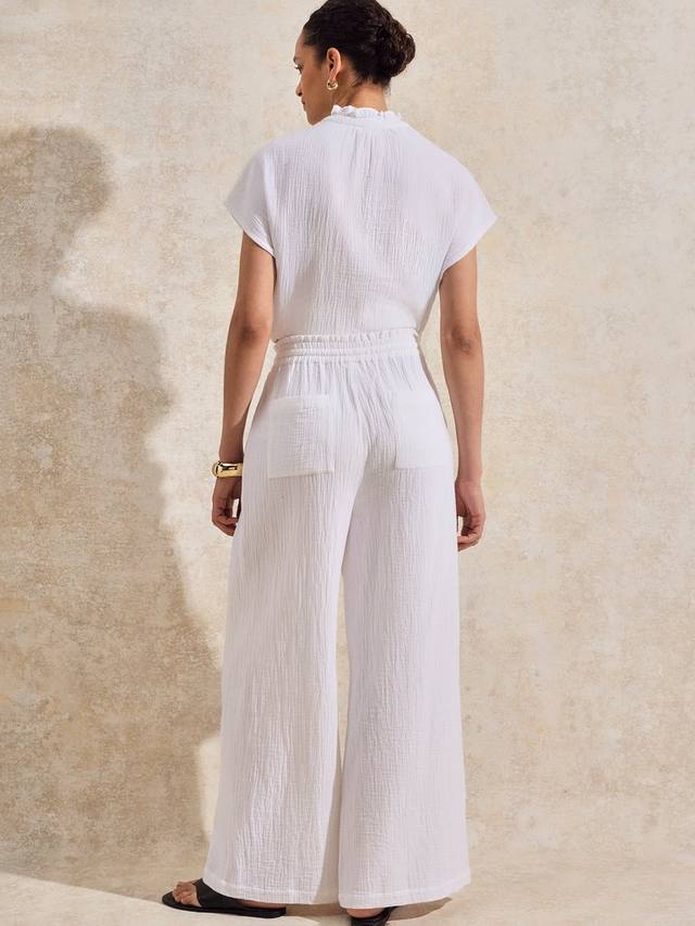 Идеальная пара для жарких летних дней: эти брюки от Ro&Zo естественно сидят на бедрах благодаря эластичной резинке на талии. Изготовлены из чистого хлопка и имеют свободный широкий крой.