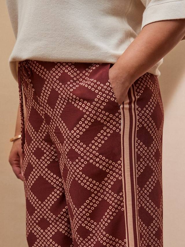 Представляем широкие брюки с геометрическим принтом и завязками. Эти брюки с эластичным поясом и регулируемой кулиской стильные и невероятно удобные. Широкий крой брюк подчеркивает фигуру, а боковые карманы очень практичны. Сочетайте брюки с хлопковой футболкой и кроссовками для создания роскошного образа на каждый день.