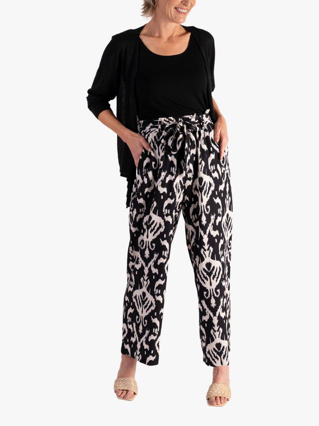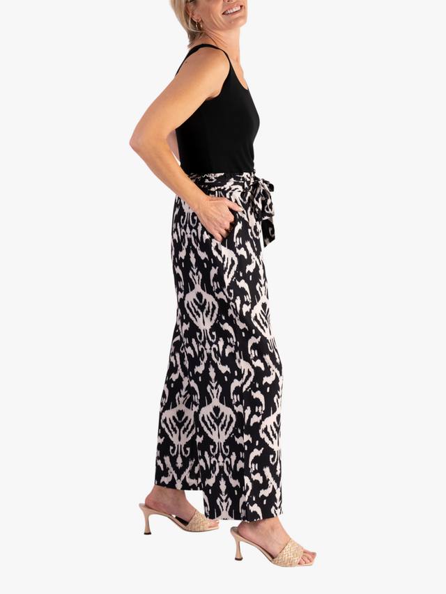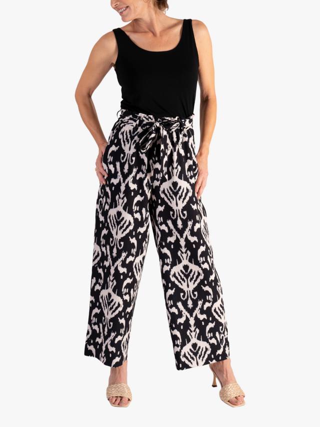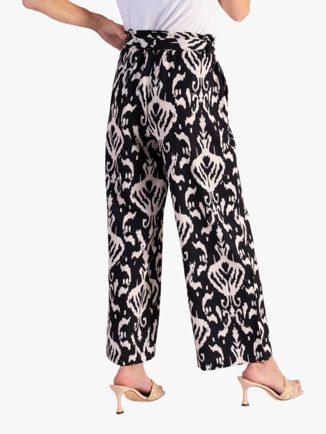 Широкие брюки классического кроя от Chesca. Высокая посадка, эластичный пояс на завязке, яркий богемный рисунок икат и низ до щиколотки.