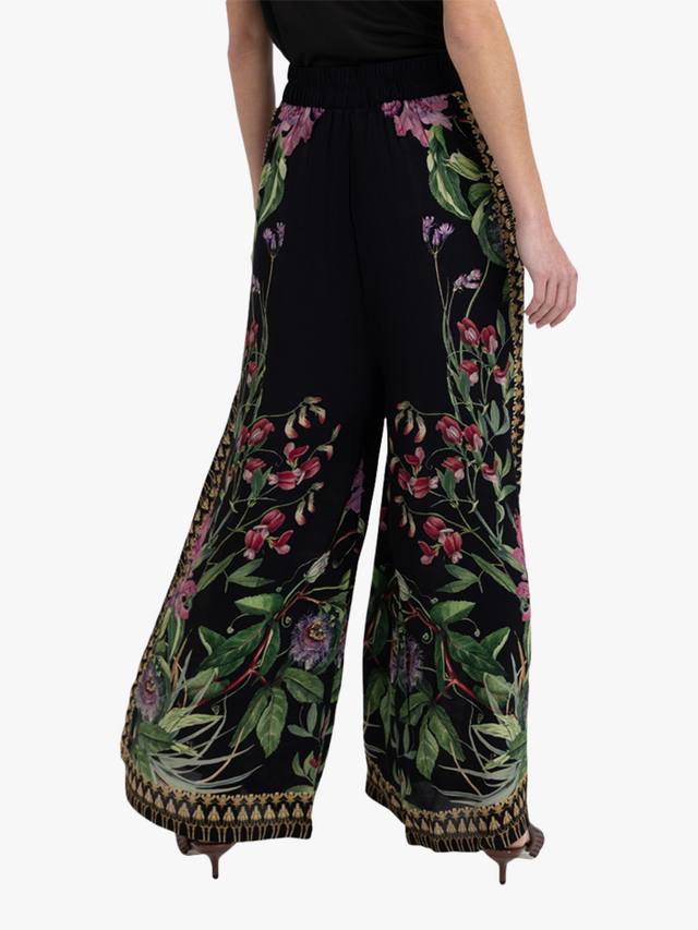 Широкие брюки из лёгкой ткани, украшенные детальным каймой, придают им изысканный вид. Высокая талия и струящийся силуэт обеспечивают комфорт и элегантность.