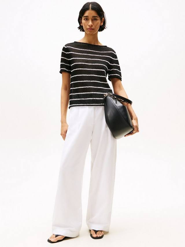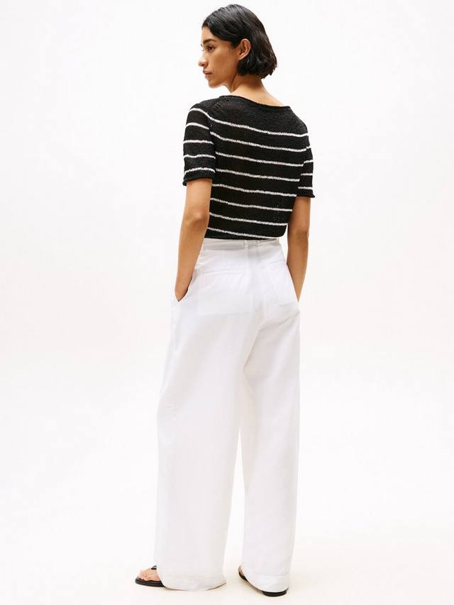 Широкие брюки Tommy Hilfiger со складками, выполненные из мягкой и лёгкой смесовой льняной ткани. Средняя посадка, застёжка на пуговицу и молнию, стандартный крой.