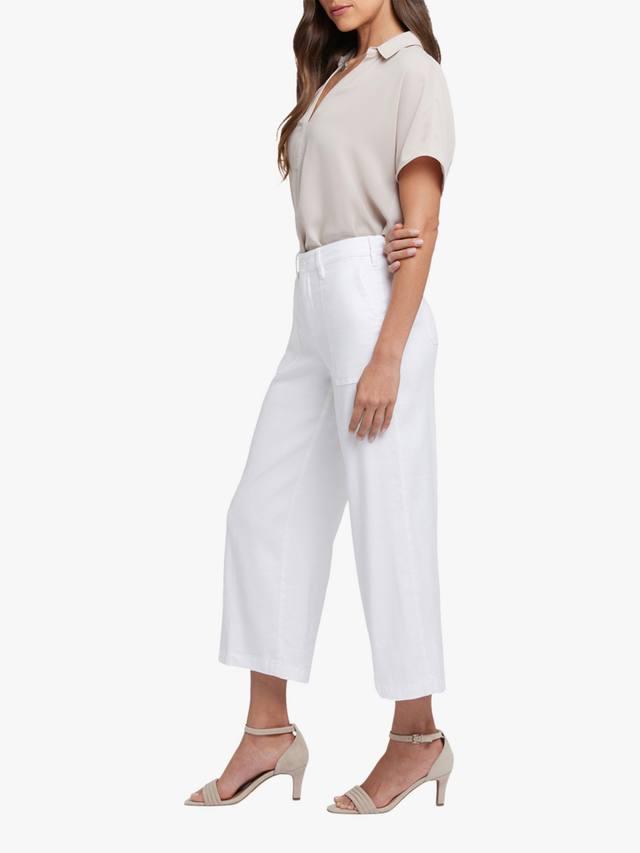 Стиль, комфорт и привлекательный дизайн — брюки-капри Wide Leg Cargo из эластичного льна от NYDJ сочетают в себе всё. Модный широкий крой и укороченная длина делают эту пару идеальной для тёплых дней. Чтобы ваша талия выглядела изящнее, они доходят до естественной талии и оснащены технологией Lift Tuck — нашей фирменной утягивающей вставкой с запатентованной крестообразной конструкцией. Застегивается на молнию и пуговицы, имеет четыре кармана.