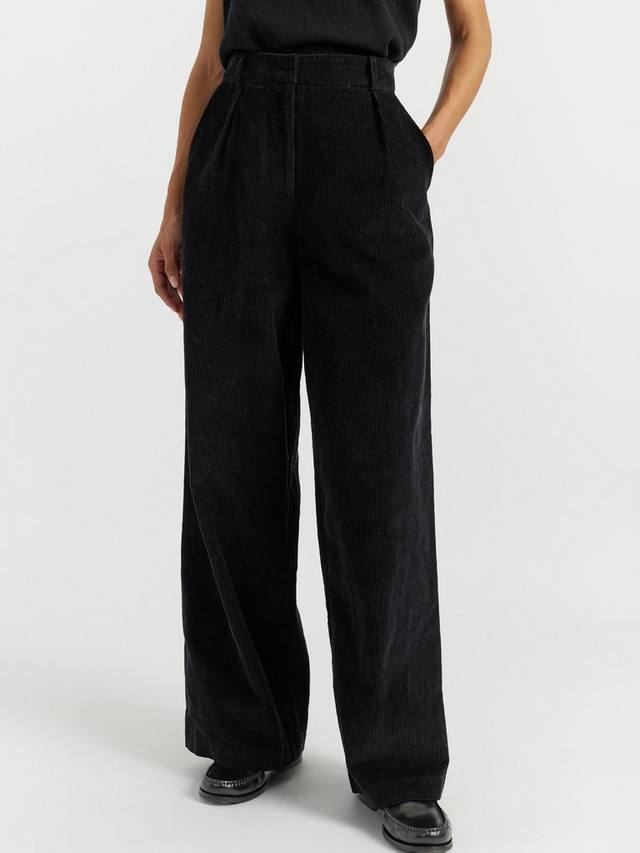 Эти брюки, ставшие фаворитом, сшиты из мягкого 100% хлопкового вельвета. Высокая талия, изящные складки и свободный силуэт обеспечивают одновременно структуру и удобство. Они идеально дополнят ваш осенний гардероб и прекрасно сочетаются с кашемировым трикотажем или строгим кроем.