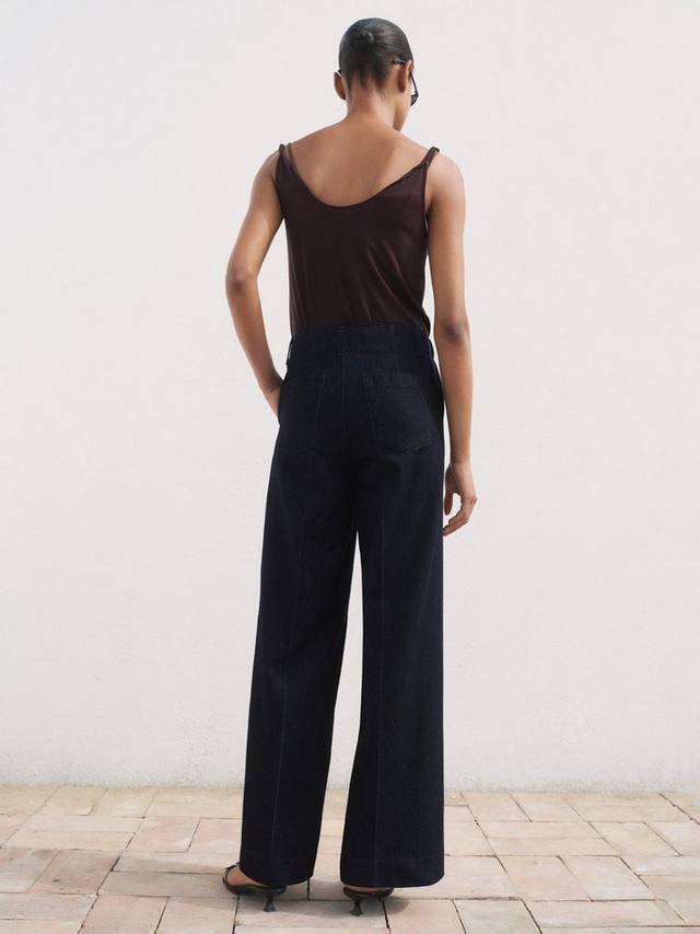 Широкие джинсовые брюки Mango, изготовленные исключительно из хлопка. Высокая посадка на бедрах, застежка на молнию, стандартная длина подола.