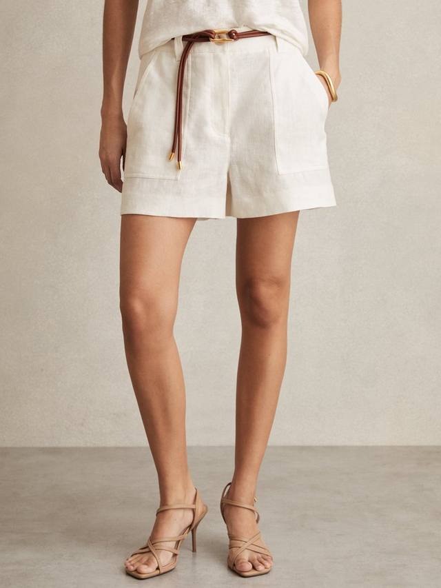 Эти шорты средней посадки от Reiss из лёгкого и воздушного льна — идеальный выбор для жаркой погоды. На выходных заправьте их под белоснежную футболку, а в будни наденьте блузку с фактурной тканью для создания элегантного летнего настроения.
