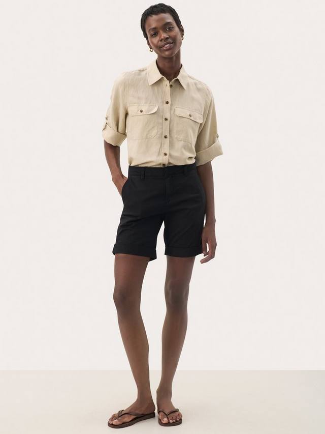 Эти классические шорты Hanijan изготовлены из лёгкого и дышащего материала, обеспечивая комфорт в течение всего дня. Благодаря свободному крою и подвёрнутому краю они идеально подходят для тёплых летних дней и легко сочетаются с топами и рубашками.