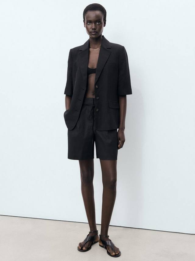 Элегантные шорты из мягкой льняной ткани обеспечат комфорт на весь день. Удобный крой средней посадки не стесняет движений, а классический однотонный крой добавит непринужденности любому образу.