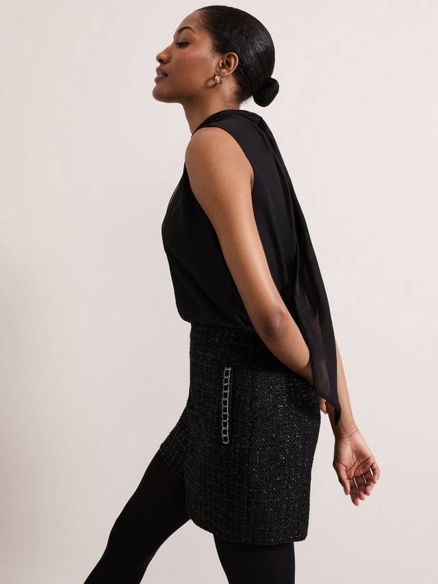 Шорты Ripley, украшенные металлизированной нитью, дополнены бархатной лентой и цепочкой, что создает выразительный образ.