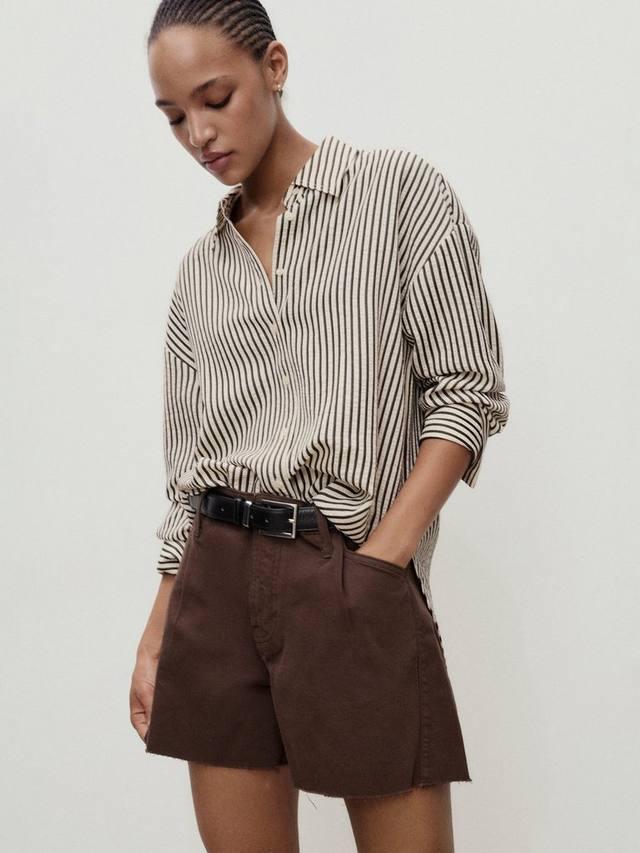 Хлопковые шорты средней посадки от Mango, скроенные по фигуре. Комфортные и практичные, они застегиваются на пуговицу и молнию, позволяя вам быть готовыми к любым неожиданностям.