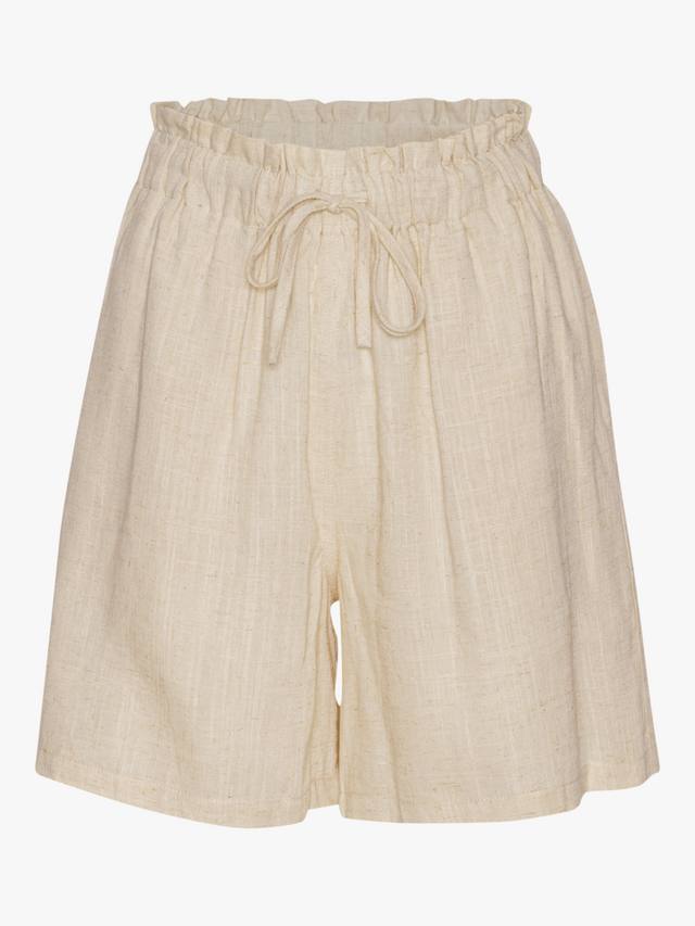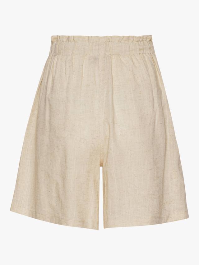 Шорты Lerke средней длины из мягкого льна. Талия на резинке, завязывается шнурками. Сверху небольшая оборка, широкие штанины.