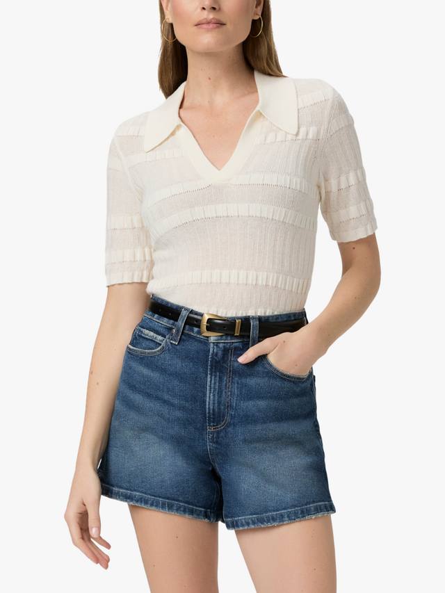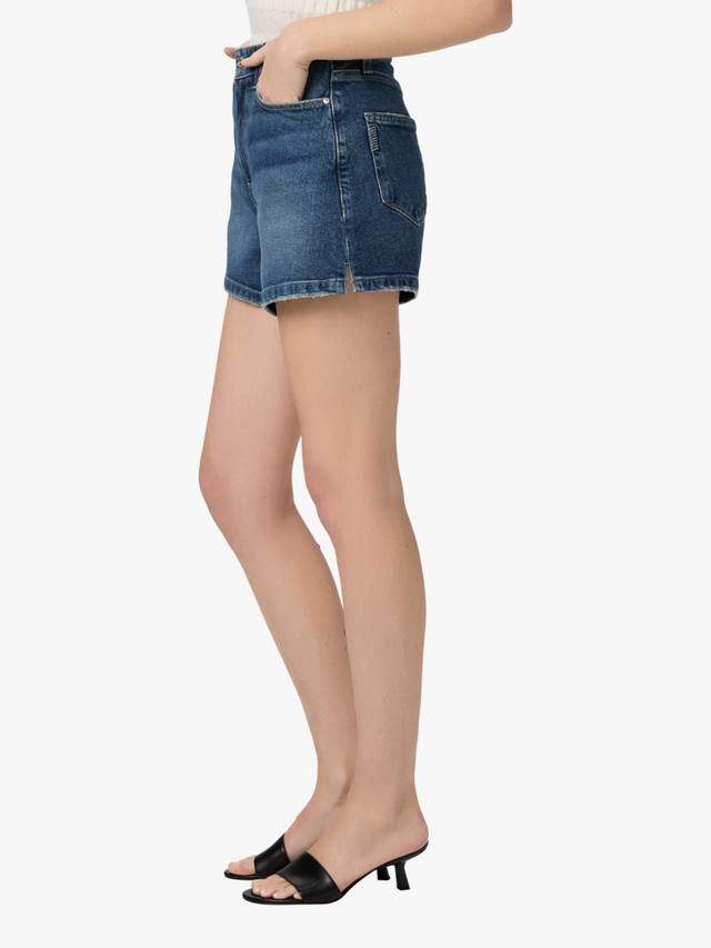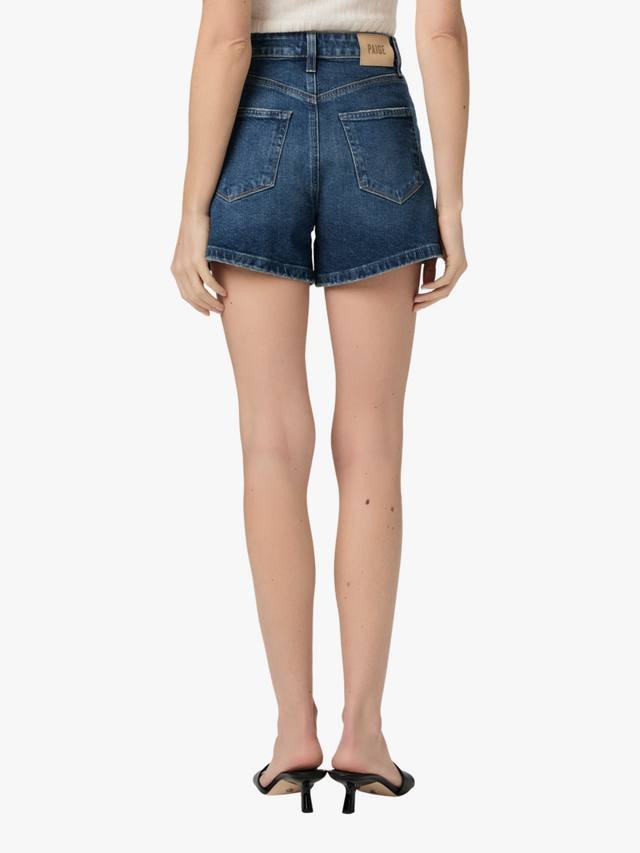 Винтажные, но в то же время современные шорты с высокой талией, А-образным силуэтом и внутренним швом 10 см. Эта пара выполнена из джинсовой ткани PAIGE VINTAGE выцветшего средне-синего оттенка с обработанным краем.