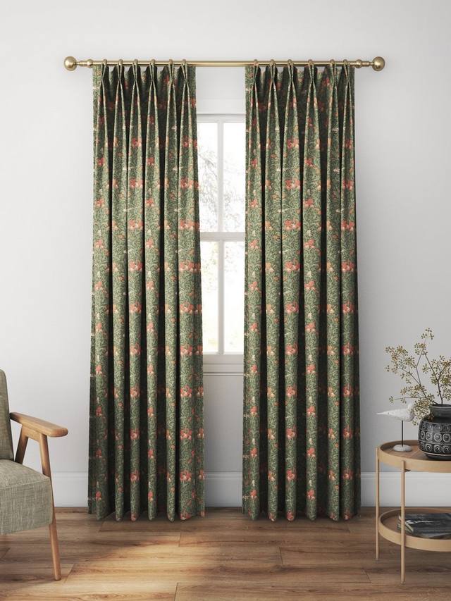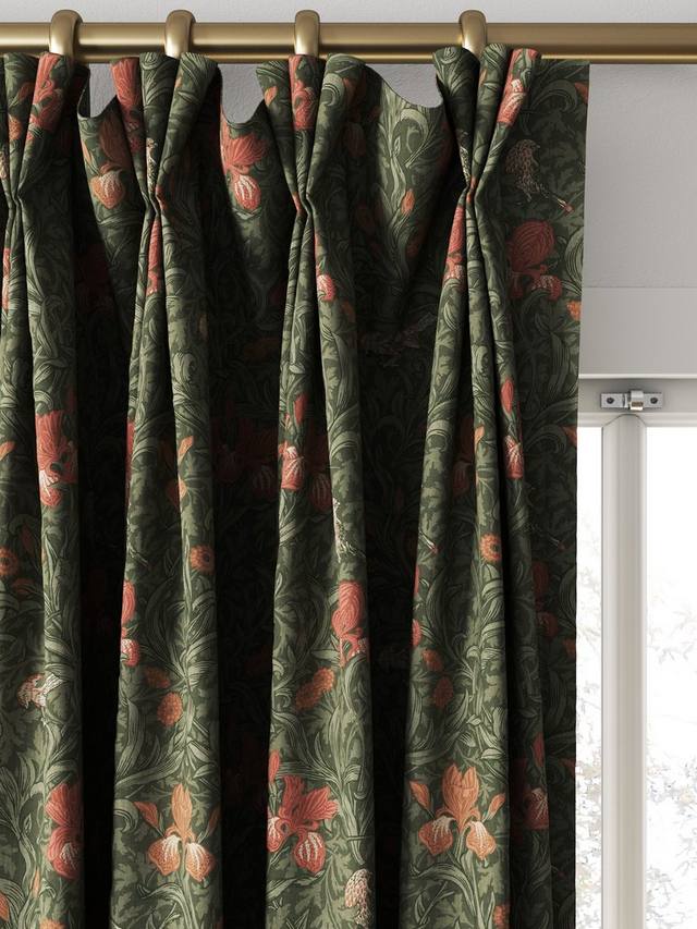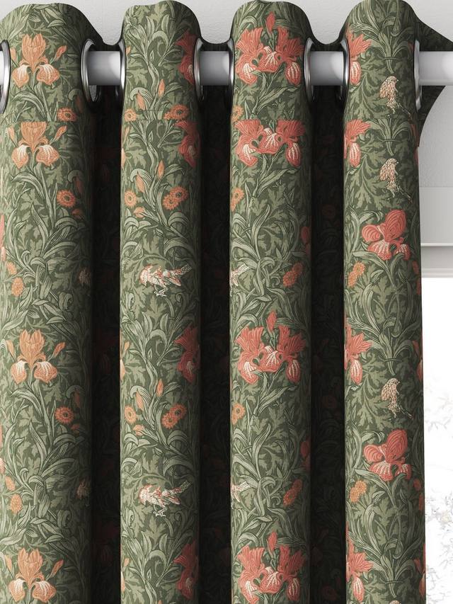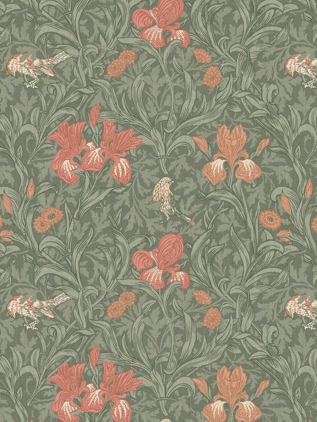 Ирис был изначально создан в 1887 году как дизайн обоев и представляет собой живую композицию из бархатцев, цветов ириса и маленьких птичек, сплетенных среди ветвей боярышника. Напечатанный на хлопке, этот дизайн прекрасно напоминает яркие цветы английского загородного сада.