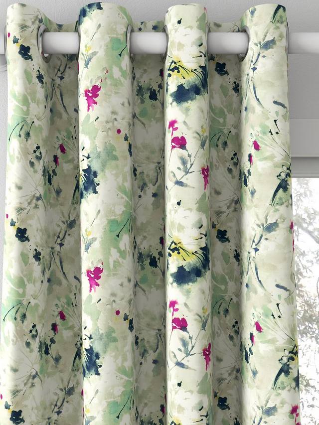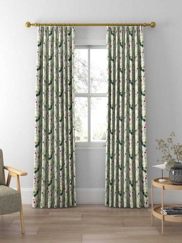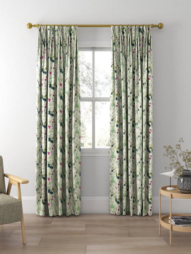 С сказочным качеством, водянистые нарисованные головки семян и цветы покрывают поверхность этой льняной ткани от Sanderson.
