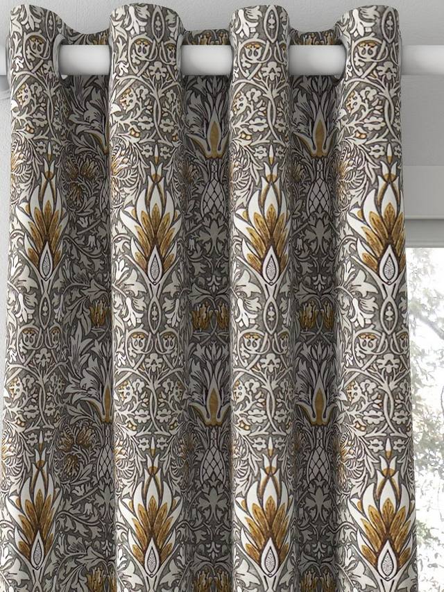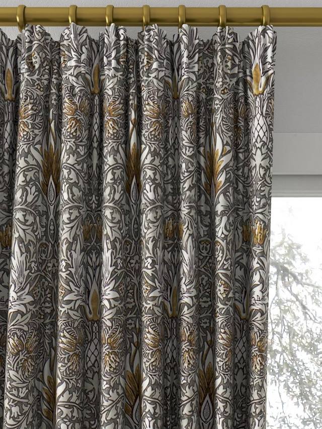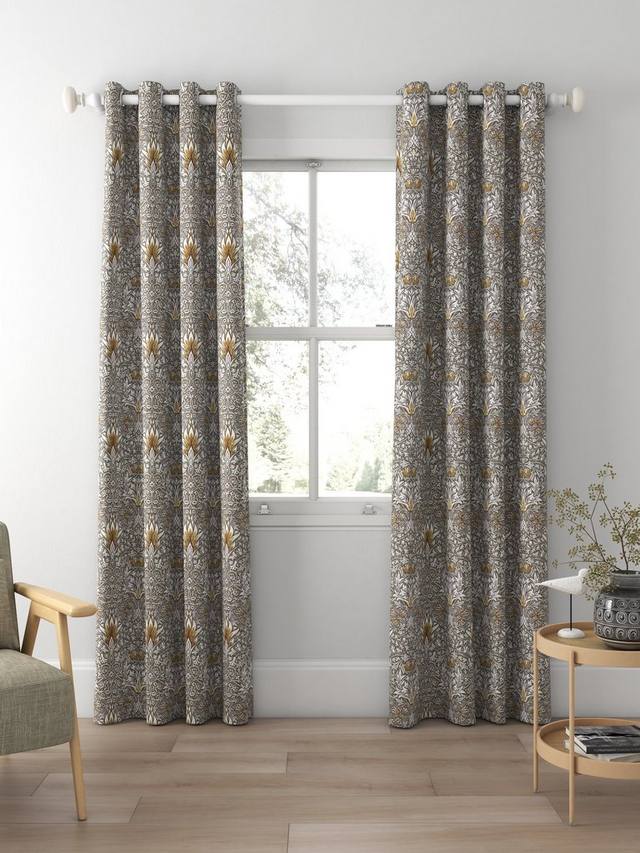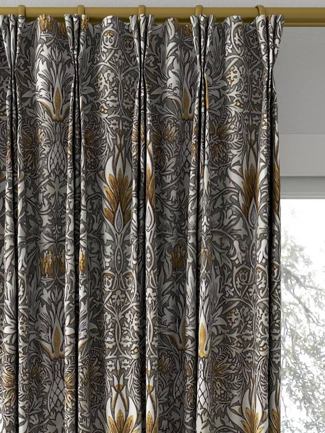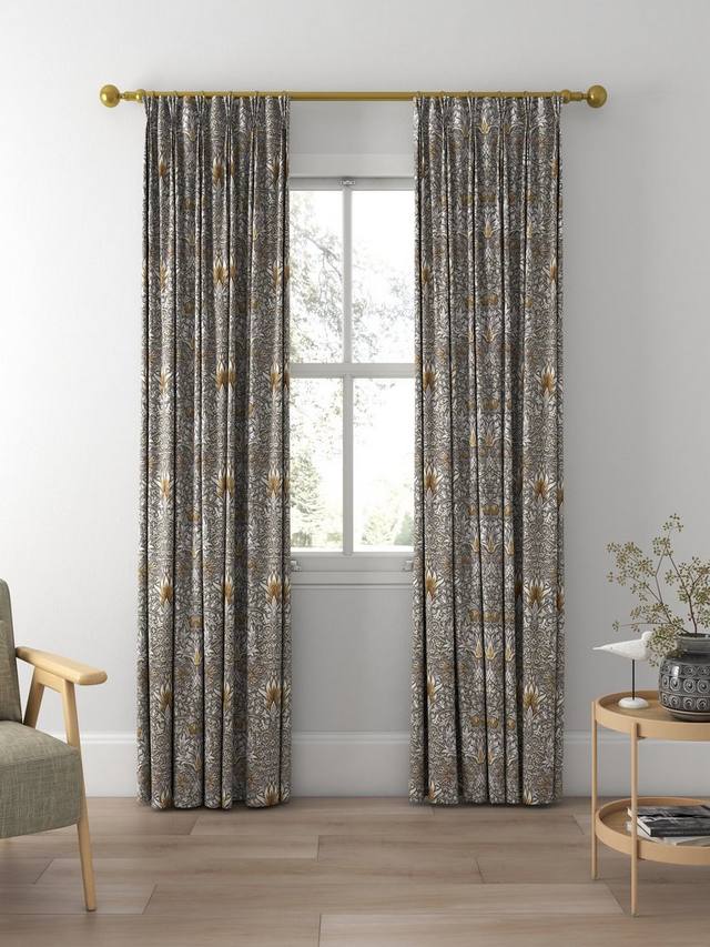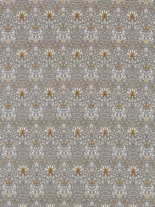Ткань Змеиная голова от Morris & Co. украшена эффектным узором, напоминающим пламя, с острыми пучками листьев и вьющимися завитками.