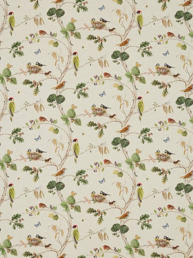 Ткань Woodland Chorus от Sanderson, вдохновленная живописью XVIII века с изображением растений и животных, украшена сплошным узором с изображением британских птиц, бабочек и пчёл, обосновавшихся среди ветвей деревьев. Прорисованный с изысканной детализацией и в прекрасной цветовой гамме, этот рисунок переносит вас в атмосферу леса.