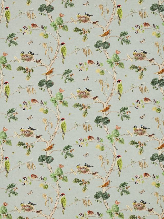 Ткань Woodland Chorus от Sanderson, вдохновленная живописью XVIII века с изображением растений и животных, украшена сплошным узором с изображением британских птиц, бабочек и пчёл, обосновавшихся среди ветвей деревьев. Прорисованный с изысканной детализацией и в прекрасной цветовой гамме, этот рисунок переносит вас в атмосферу леса.