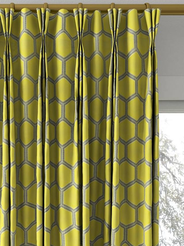 Ткань Zardozi от Designers Guild с ярким геометрическим узором из переплетённых шестиугольников, напоминающим пчелиные соты, представлена в различных цветах: от приглушённых земляных тонов до ярких, привлекающих внимание оттенков.