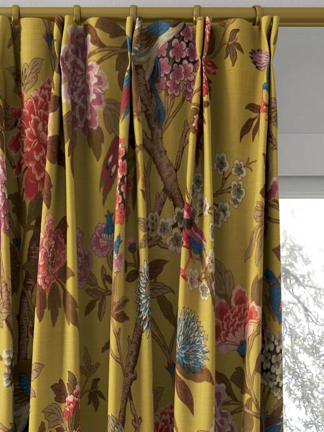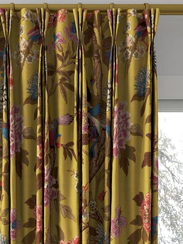 Льняная ткань Hydrangea Bird от GP & J Baker украшена экзотическими птицами и цветами.