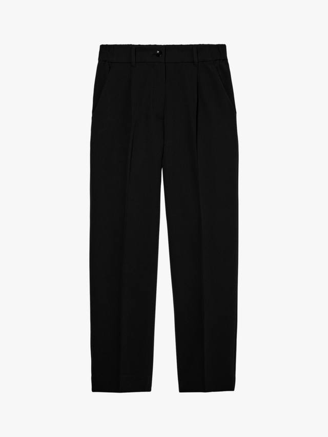 Брюки из эластичной вискозной смеси. Спереди защипы, заутюженная складка вдоль штанины и резинка на талии сзади.