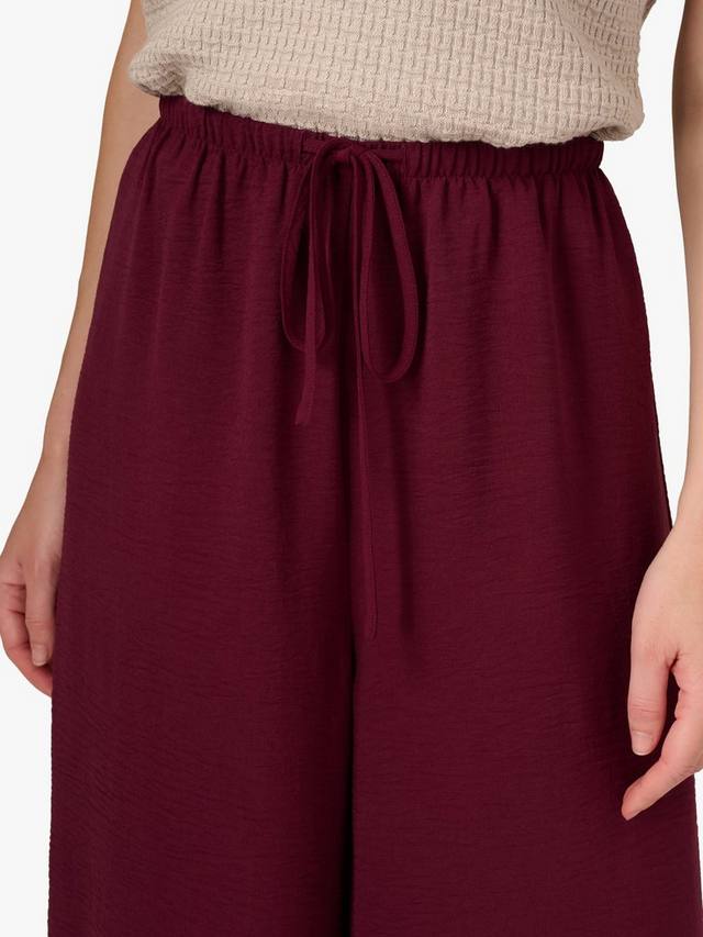 Достаточно элегантные для офиса, достаточно свободные для отдыха в выходные. Эти брюки с широкими штанинами сшиты из мягкой, но структурированной ткани с лёгкой драпировкой, которая не сковывает движений. Тонкий эластичный пояс с кулиской обеспечивает комфортную посадку. Универсальный силуэт этих брюк сочетается с любыми вещами: от строгих блузок до уютного трикотажа, обеспечивая лёгкий переход от работы за столом к отдыху.