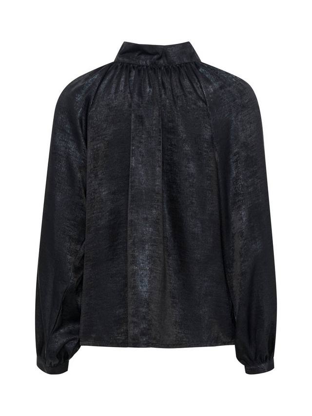 Блузка Elvie — идеальное сочетание скромности и драматизма. Свободный воротник-труба с мягкими складками снизу и невидимая молния сзади. Блузка выполнена из металлизированной ткани. Рукава длинные, свободные, реглан, собраны в узкую манжету. Блузка имеет классический крой.