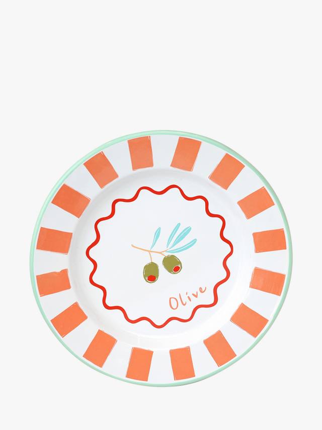 Эта тарелка с оливковым мотивом отлично подходит для лёгкого обеда или бранча в непринуждённой обстановке. Она входит в коллекцию Bon Appetit от Talking Tables, воплощающую тенденцию к созданию дома в стиле бистро. Эта эмалированная посуда прочная, ударопрочная, лёгкая, обработана вручную и многократно погружена в краску для достижения свежих и насыщенных цветов.