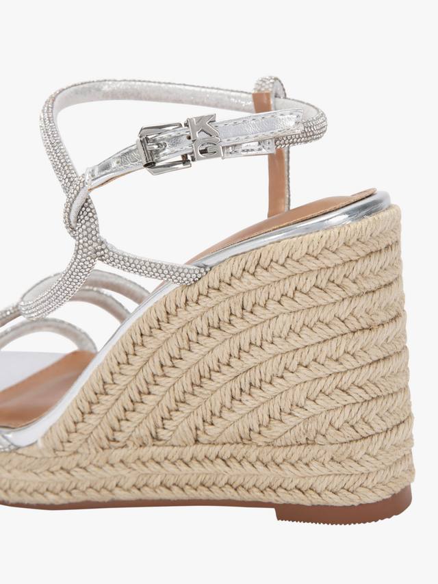 Эта пара эспадрилий с металлическим каблуком от KG Kurt Geiger стильно впишется в теплую погоду и выполнена с верхом из ремешков, украшенным кристаллами. Туфли на каблуке-танкетке с веревкой и открытым носком для дополнительного очарования.