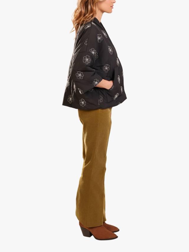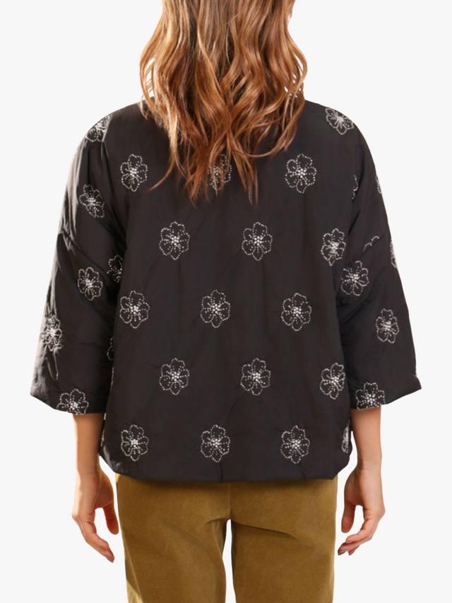 Эта потрясающая стеганая куртка-шраг укороченного свободного кроя с пышными рукавами и спущенными плечами создаёт непринуждённый образ. Ткань с цветочным принтом и бусинами выглядит невероятно элегантно. Легко сочетается с любым нарядом.