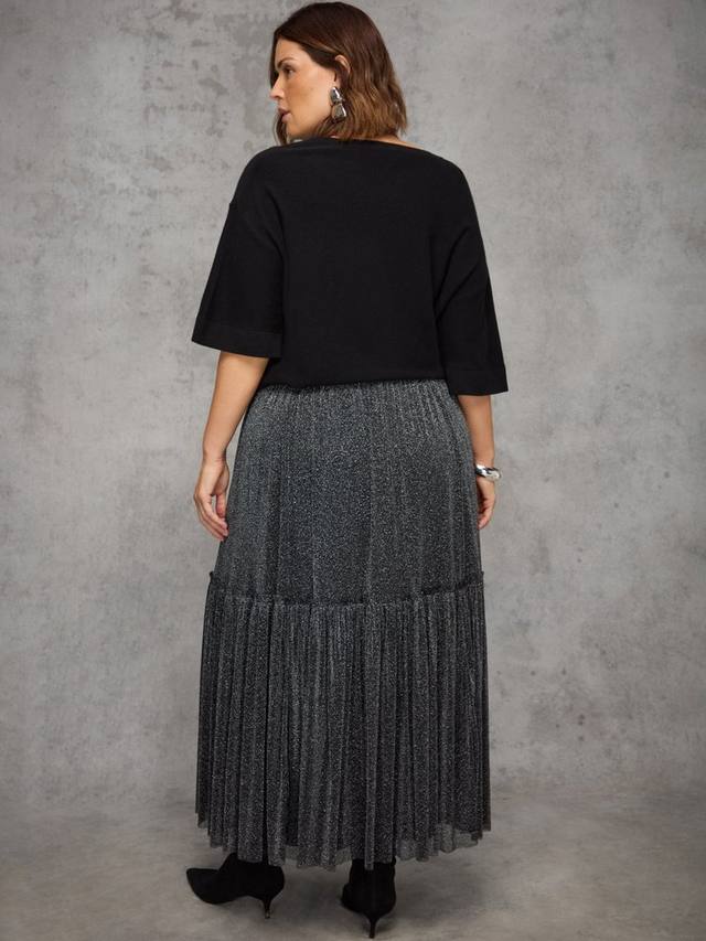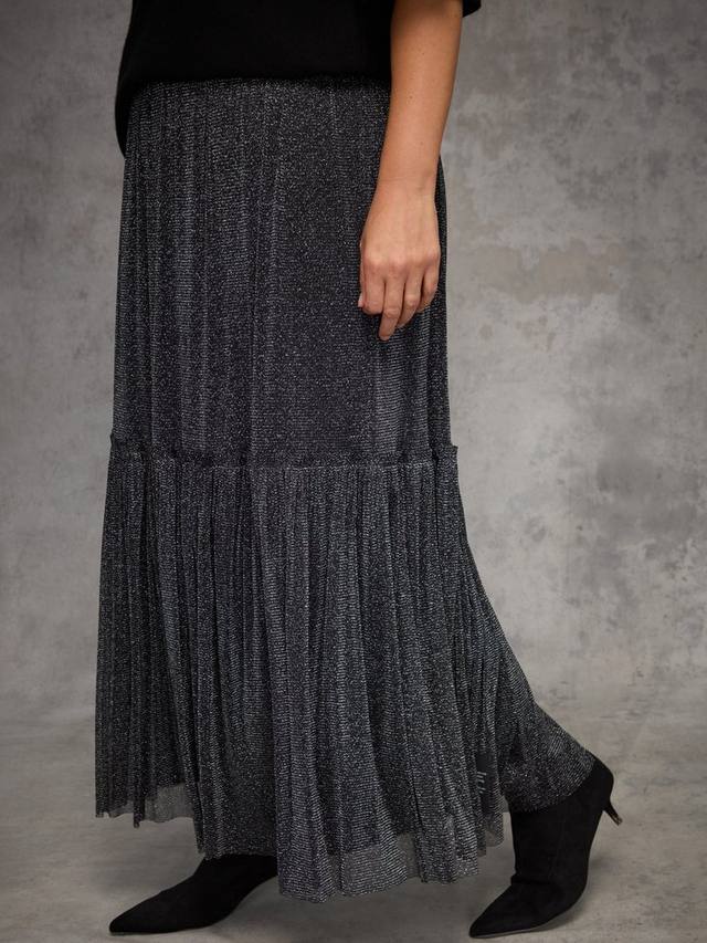 Эта гламурная макси-юбка с удобной резинкой на талии и красиво собранным ярусным кроем создает мягкий объем и движение. Юбка полностью на подкладке для гладкой посадки и выполнена из блестящего трикотажа с легким мерцанием, что делает ее идеальным вариантом для вечерних выходов или торжественных мероприятий.