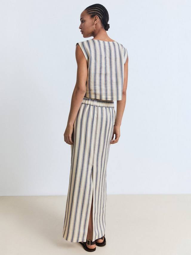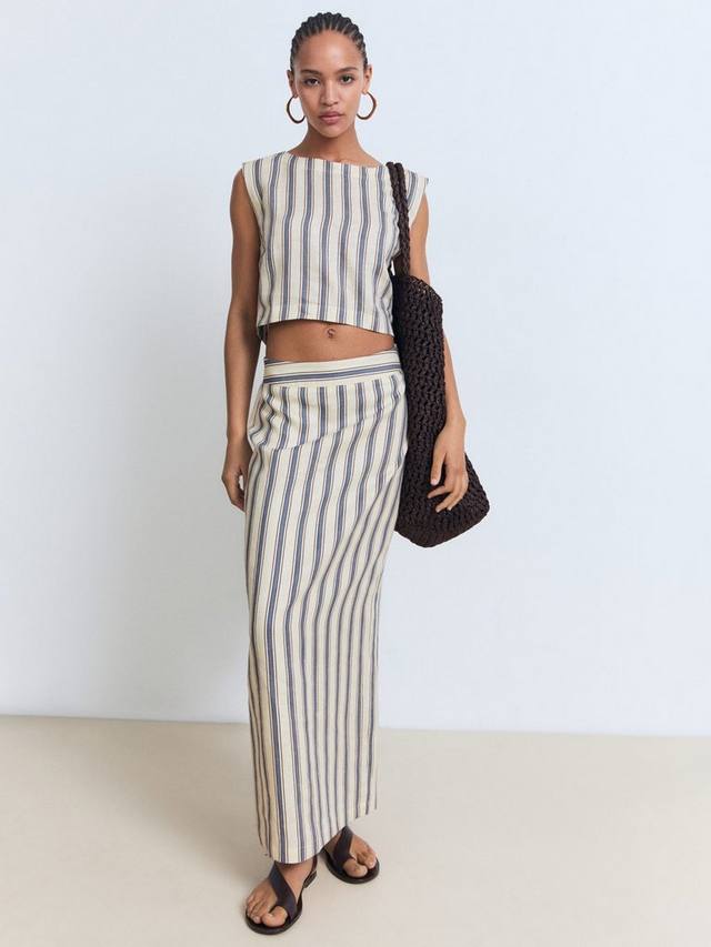 Эта полосатая макси-юбка из воздушного льна с мягкой хлопковой подкладкой обеспечит вам прохладу и комфорт, идеально подходит для расслабленного летнего отдыха. Прямой крой не стесняет движений и подходит для любого случая.