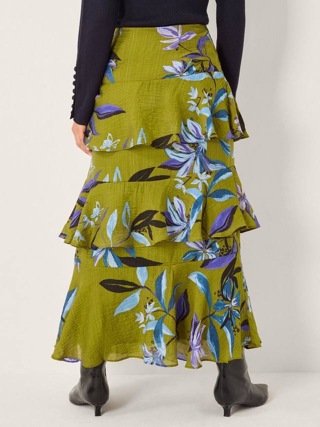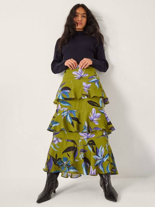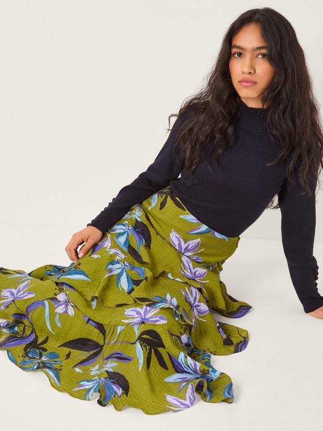 Юбка миди от Monsoon. Простой фасон А-силуэта с мягкими оборками, выполненный из вискозной смесовой ткани с высокой талией и цветочным принтом. Застегивается на молнию.