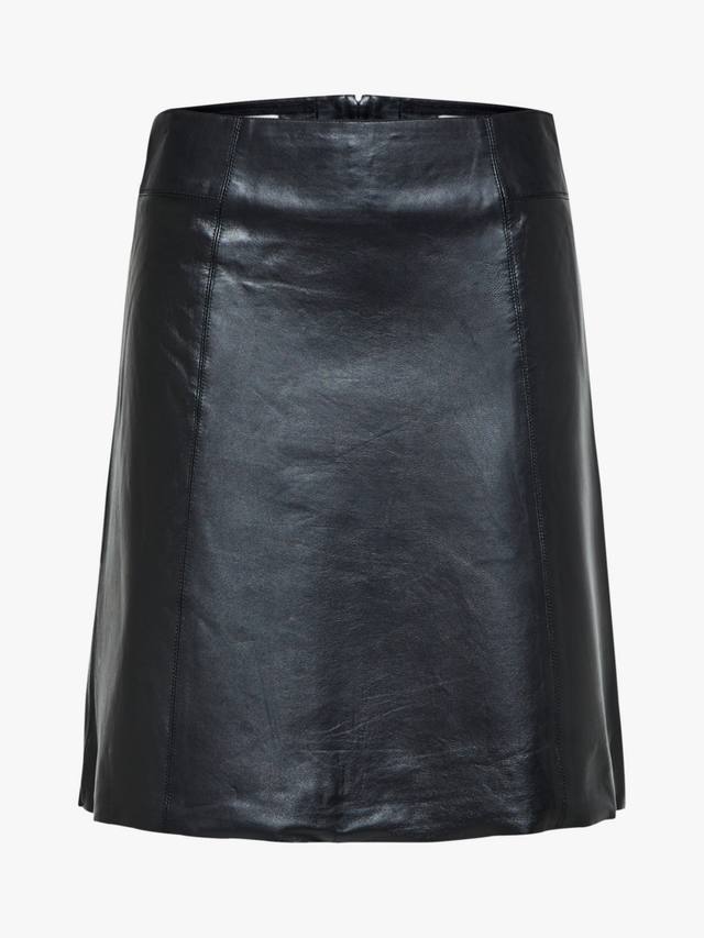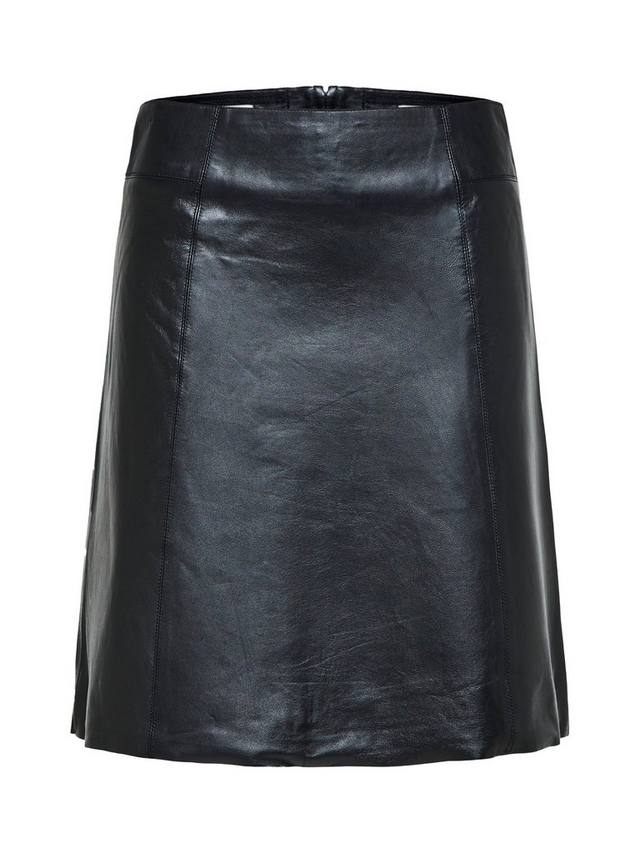Кожаная юбка Selected с высокой талией создана для повседневного ношения – она прочная, удобная и не сковывает движений. Классический крой и классический А-образный силуэт создают элегантный образ, а удобная застежка-молния дополняет её.