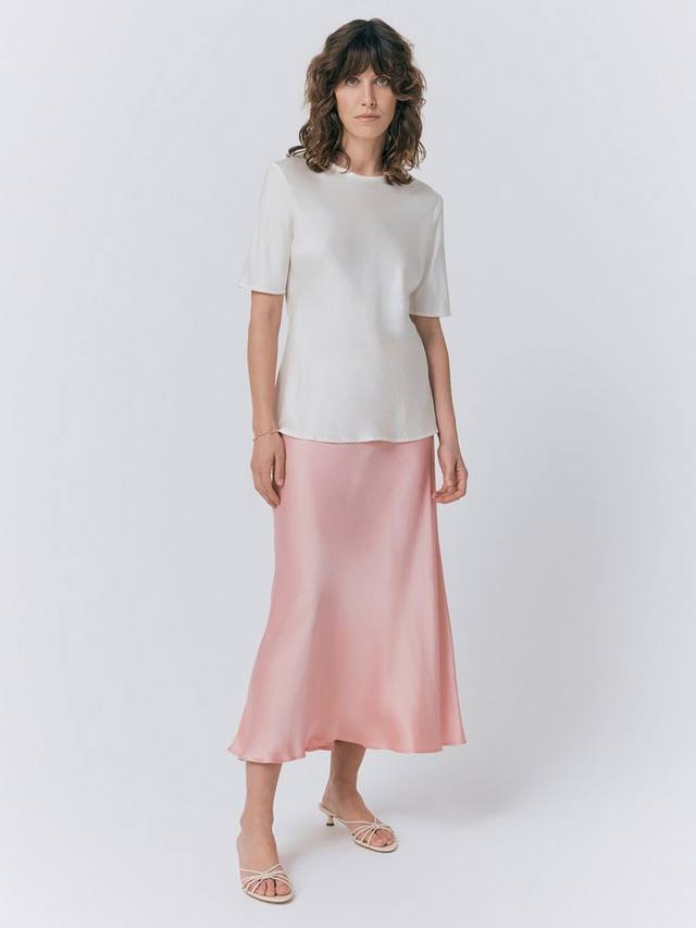 Если в вашем гардеробе всего одна юбка, пусть это будет Luna. Эта юбка – настоящая классика: она скроена по косой и имеет длину миди. Изготовлена из фирменного атласа, который плавно ниспадает по фигуре, создавая облегающий силуэт. Эластичный пояс обеспечивает комфорт. В этом сезоне рекомендуем носить атласную майку и трикотаж.